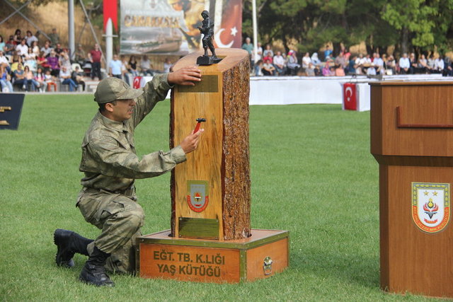 Yemin eden askerler adına birliğine ilk katılan ulaştırma er İbrahim Burak Zaza, yaş kütüğüne plaket çaktı. Ege Ordusu ve Garnizon Komutanı Orgeneral Abdullah Recep, eğitimlerini başarıyla tamamlayan personele belgelerini verdi.