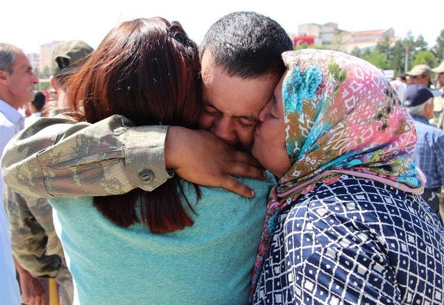 Yemin töreninin ardından asker evlatlarına kavuşan bazı ailelerin gözyaşlarına hakim olamadıkları görüldü.