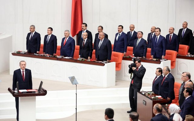 15 Temmuz gecesi darbe girişimi sırasında bombaların hedefi olan TBMM, 26. Dönem'in 2'nci yasama yılına başladı. Yeni yasama yılı, TBMM Başkanı İsmail Kahraman'ın Meclis'in ikinci kez "Gazi" unvanı aldığı vurgusunu yaptığı konuşmayla başladı. Genel kurulda ilk iş olarak, hükümete Irak ve Suriye'ye asker gönderme yetkisini veren tezkerenin süresinin 13 ay uzatılması ele alındı. Milli Savunma Bakanı Fikri Işık'ın konuşmasında "Tek hedefi bu ülkenin huzuruna saldıran içteki ve dıştaki teröristlerdir" sözleriyle gerekçelendirdiği tezkere; AK Parti, CHP ve MHP'nin oylarıyla kabul edildi.