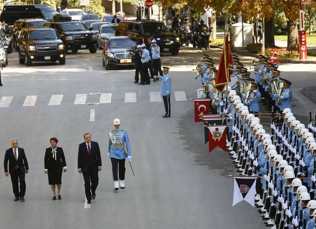 Aralarında ABD'nin Ankara Büyükelçisi John Bass'ın da olduğu yabancı misyon şefleri, Erdoğan'ın konuşmasını simültane tercümeyle dinledi. Bass'ın sık sık not aldığı görüldü.