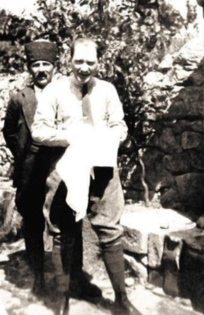 Atatürk'ün, 1917'de 2'nci Ordu Komutanı olarak görev yaptığı Diyarbakır'da iki subay ve bir çocukla çektirdiği fotoğraf dikkati çekti.