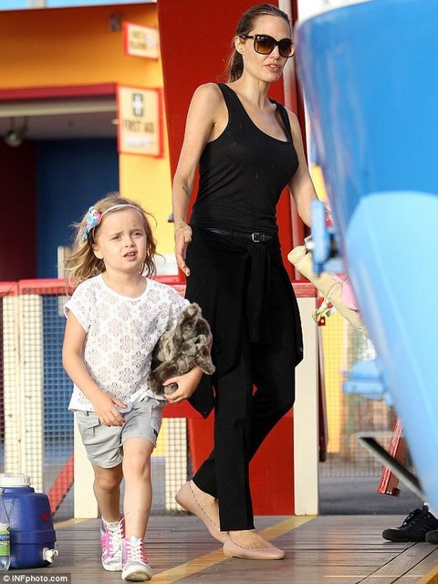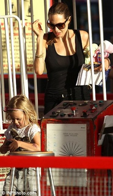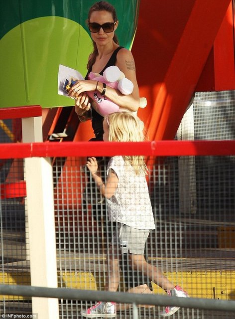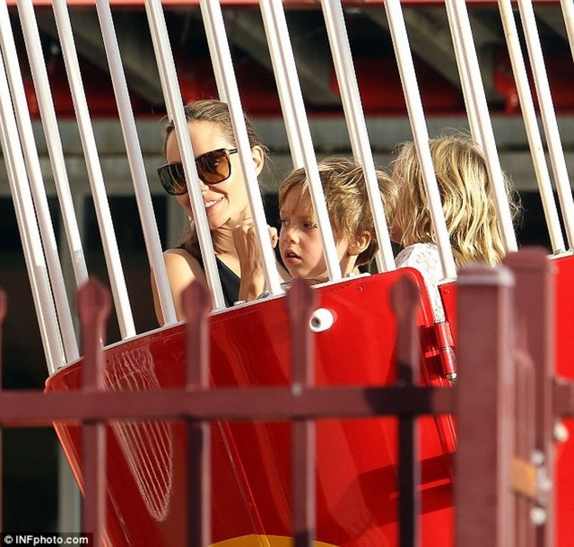 Dünyaca ünlü yıldız Angelina Jolie ikizleri Vivienne ve Knox'la çıktığı Lunapark gezisinde objektiflere yansıdı.