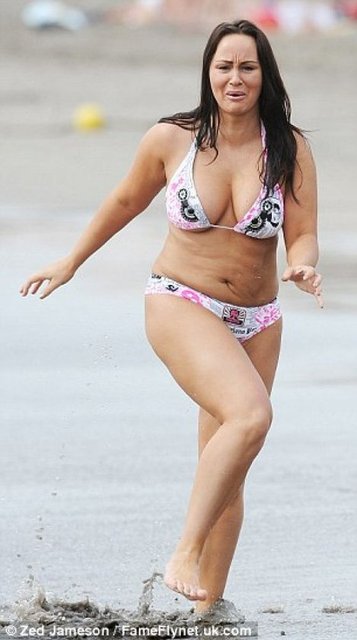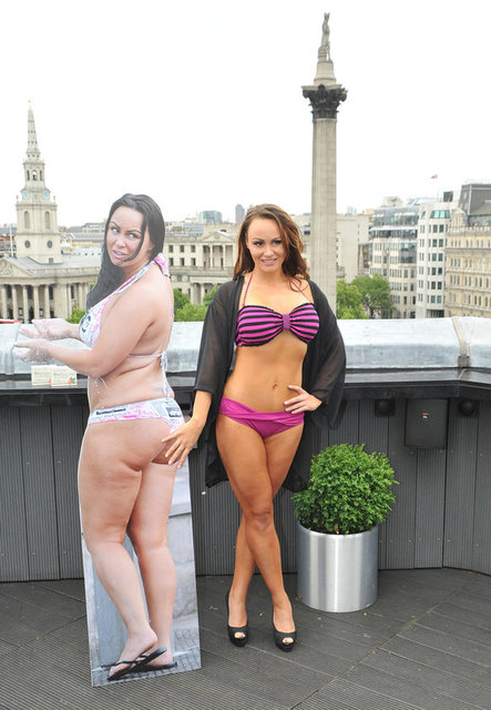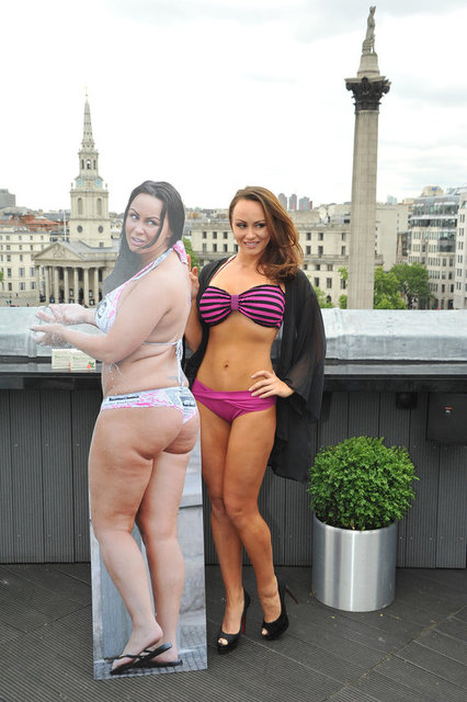 Renkli bikinisi ve üzerine giydiği kaftanla kendi posteri önünde poz veren Hayes, verdiği kilolarla dikkat çekti. -