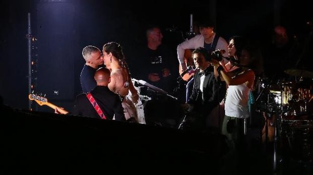 Düğüne Ramazzotti'nin İsviçreli manken Michelle Hunziker ile evliliğinden dünyaya gelen kızı Aurora da katıldı.