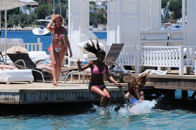 Harem dizisinde birlikte rol alan Belma Canciğer ve Gamze Karaman, önceki gün Torba Alkoçlar Otel'in sahilinde buluştu.