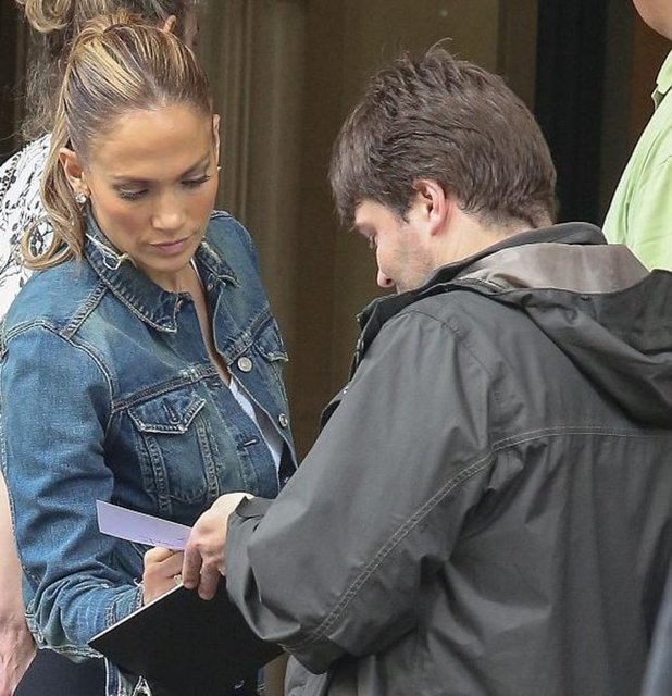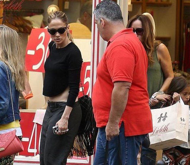 Göbeğini tamamen açıkta bırakan kıyafetiyle dikkat çakan Jennifer Lopez'in hayranları sık sık önünü kesti.