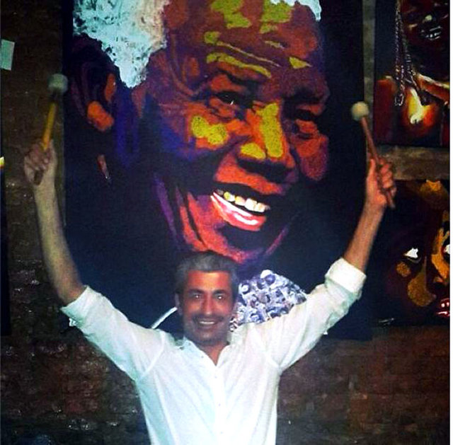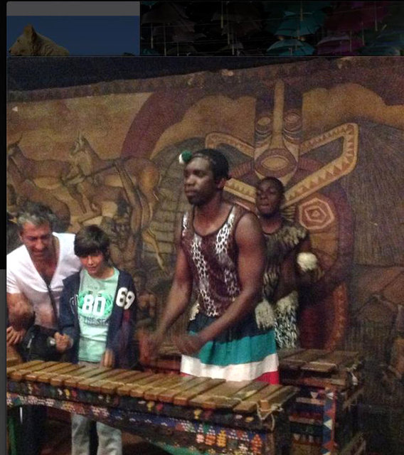 Erkan Petekkaya, yerlilerle birlikte bir ara davul çalarken bu fotoğrafını da "Guney Afrika da Mandela nin ulkesinde onun yoldaslariyla aynı sahnede onun müziğini yapmak cok keyifliydi" dedi.