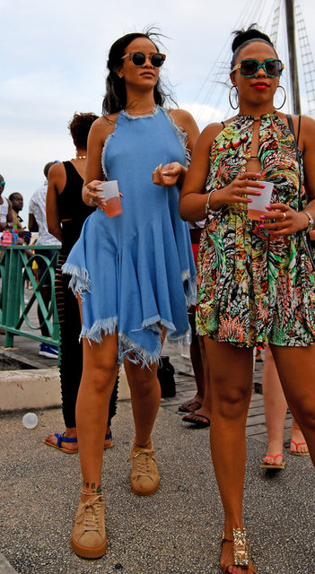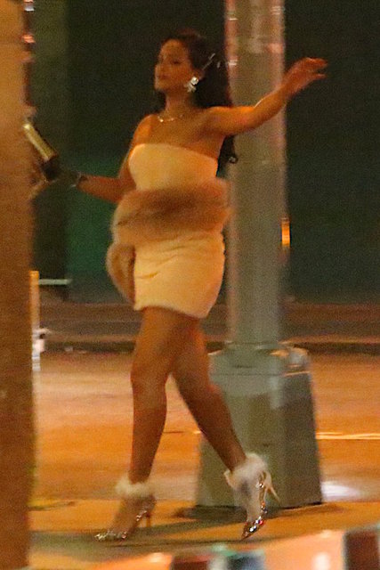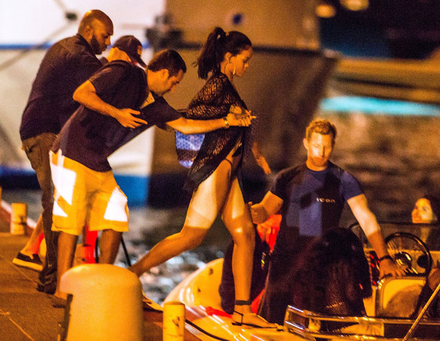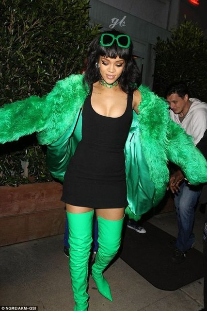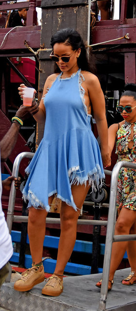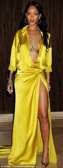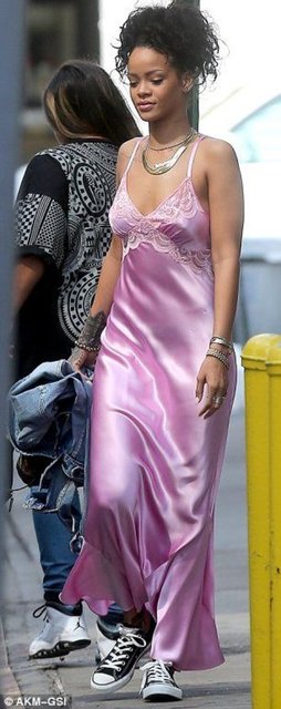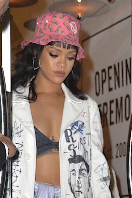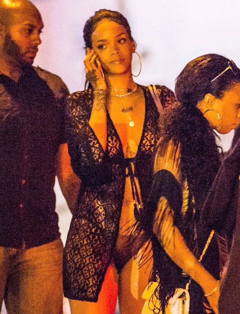 Rihanna sütyensiz giydiği dantel elbise ve rahat tavırlarıyla dikkatleri üzerine çekti.