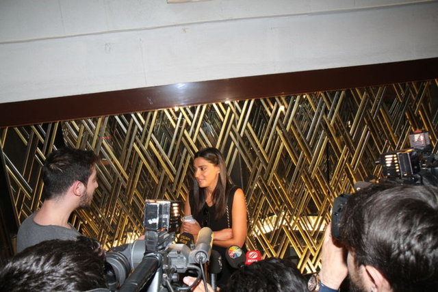 Turan, "İnsanlar bize bakıyor. Çekmeyin, ayıp oluyor" diyerek muhabirlere ricada bulunurken sevgilisi Doğan utangaç tavırlar sergiledi.