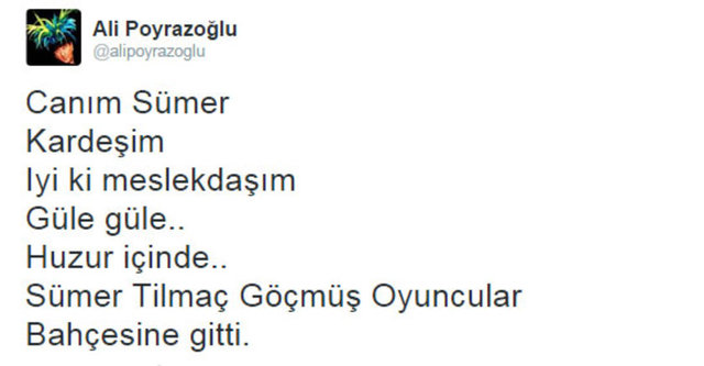 Ana Sayfa Magazin Ünlülerden Sümer Tilmaç mesajları
