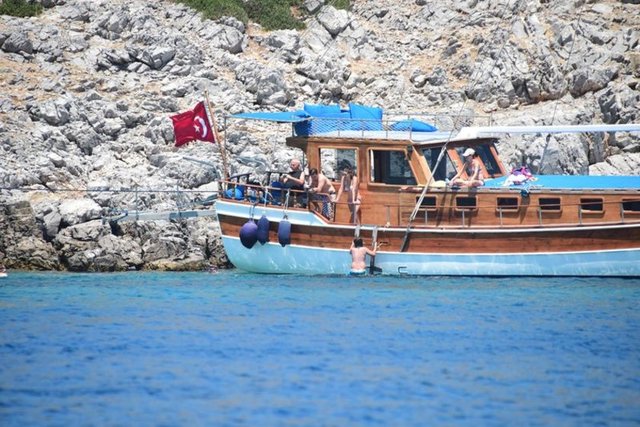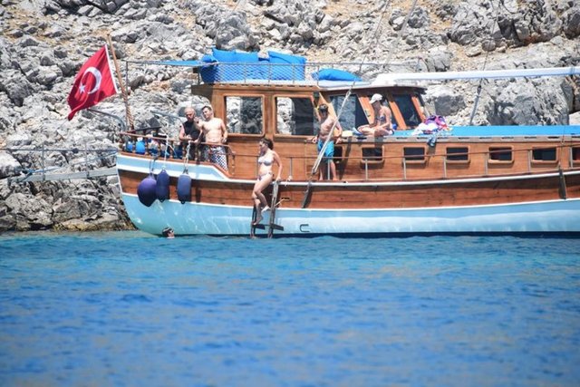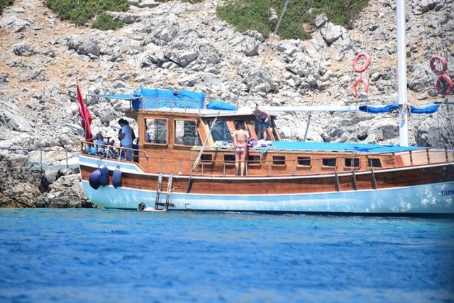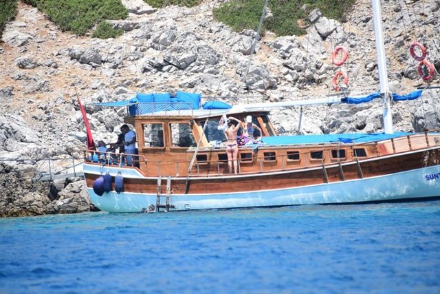 Tatilini Bodrum'da geçiren güzel oyuncu, önceki akşam sevgilisi Özgür İnal ve oğlu Osman Nejat'la tekne turuna çıktı.