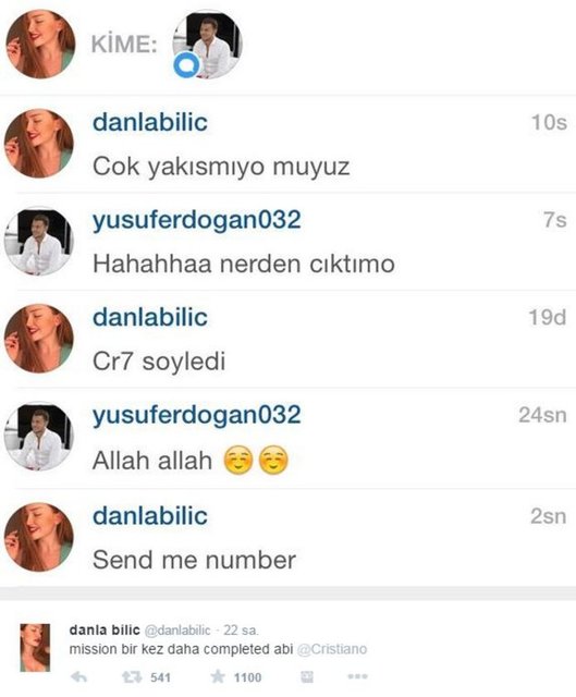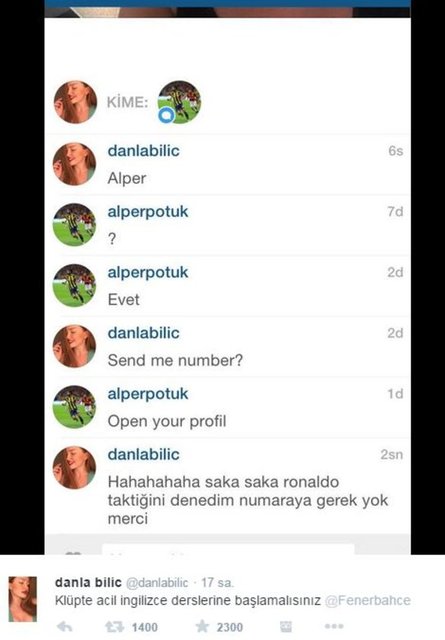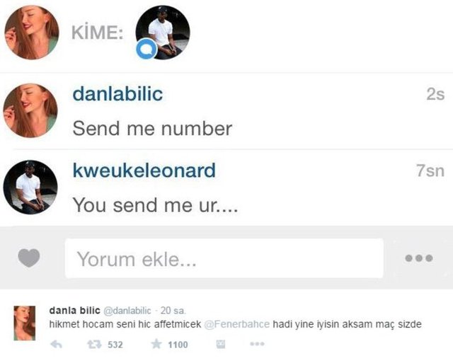 Danla Bilic ismiyle instagram hesabından Alper Potuk, Yusuf Erdoğan, Emre Çolak gibi yıldız futbolcularla iletişime geçerek futbolculara mesajlar yollayan kişi, futbolcuların telefon numaralarını isteyerek mesajlaşmalarını sosyal medyada paylaştı.