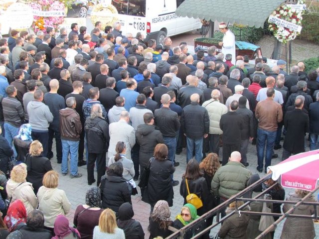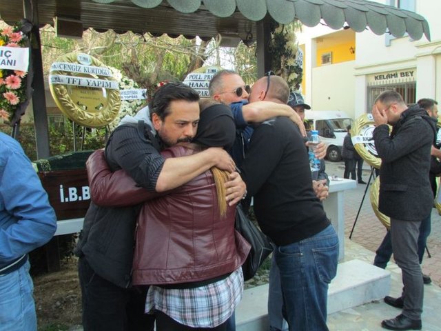 Çeşme Hacı Memiş Ağa Camii'ndeki törene katılan Emre Altuğ, kardeşi Ahmet ve babası Tuncer Altuğ cenazede ayakta durmakta güçlük çekti. Emre Altuğ'u bu zor gününde sanat dünyasından önemli isimler de yalnız bırakmadı.