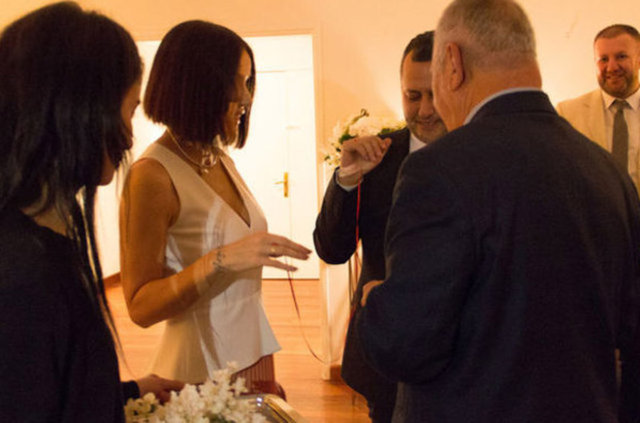 Bu romantik seçim doğrultusunda başkonsoloslukta düzenlenen törende, çiftin yanında sadece birkaç yakın dostu vardı. Ünlü şarkıcı ile müzisyen eşi, nikâhın ardından aile üyeleri ve arkadaşlarından oluşan 40 kişilik bir grupla kutlama yaptı.