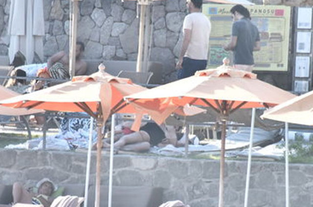 Meraklı bakışlara aldırmadan uzun süre öpüşen Soral ve Demirci, güneşin batmasının ardından plajdan ayrıldı.