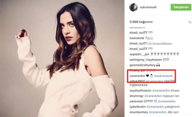 Şu sıralar İtalya'nın İnter takımında top koşturan milli futbolcu Caner Erkin, sosyal medya üzerinden oyuncu Şükran Ovalı'ya aşkını haykırdı.
