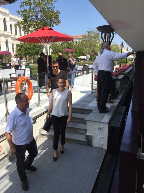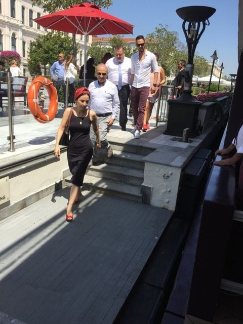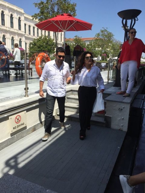 Tekneyle Yenikapı'ya hareket eden ünlü isimlerin arasında Halit Ergenç ve eşi Bergüzar Korel de vardı.