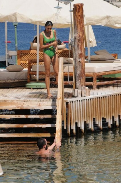 Ünlü popçunun yoğun konser programı nedeniyle günübirlik balayı yapan çift, tuttukları locada güneşin ve denizin tadını çıkardı.