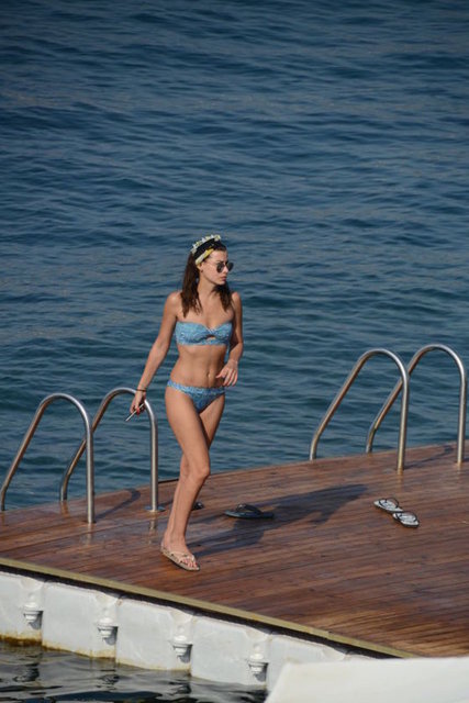 Güzel oyuncu Müjde Uzman, 32'nci yaş gününü kutladı. Uzman, göğüs dekolteli mini elbisesiyle frikik vermemek için büyük çaba harcadı