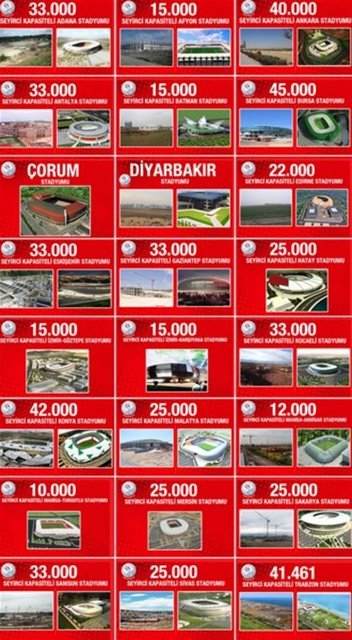 Manisa Turgutlu Stadyumu: Manisa'da yapılması planlanan bir diğer stadyum, 30 milyon lira maliyetli Manisa Turgutlu Stadyumu olacak. 10 bin seyirci kapasiteli stadyumun yapımına kısa bir süre içerisinde başlanacak.