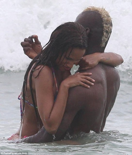 Nişanlısı Fanny Neguesha ile tatilini sürdüen Balotelli, fotoğraflarının çekildiğini fark etmesine rağmen durumdan rahatsız görünmedi.