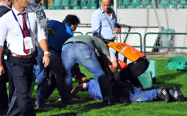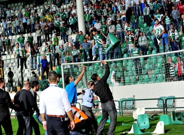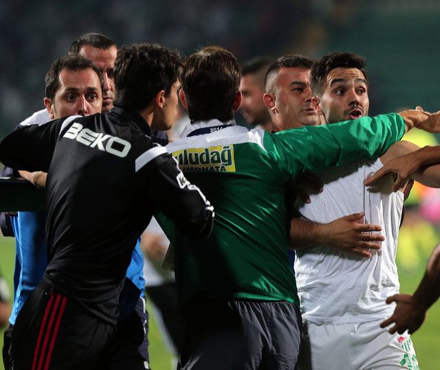 Bursaspor ile Beşiktaş arasında oynanan ve siyah-beyazlı takımın 1-0 kazandığı maçın ardından saha karıştı.