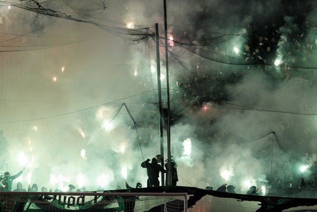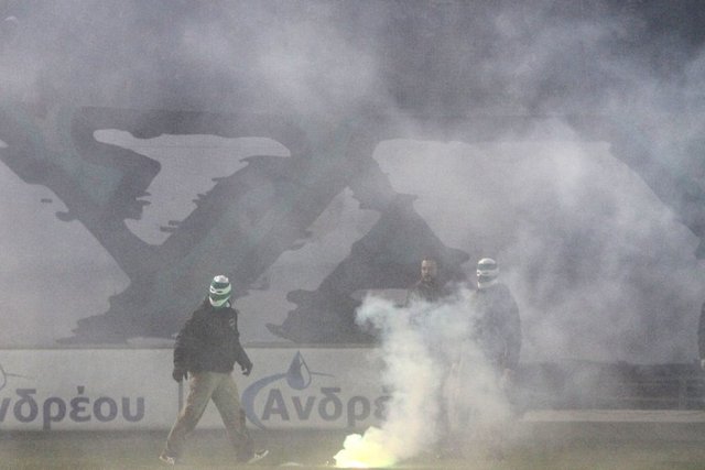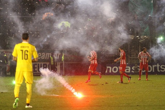 - - - Panathinaikos taraftarlarının Olympiakos yedek kulubesine attığı meşalaler yüzünden ikinci yarı da gecikmeli başladı.