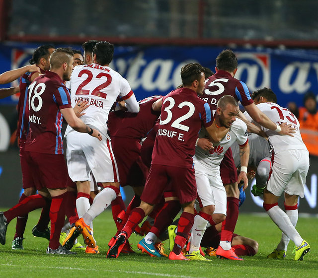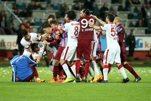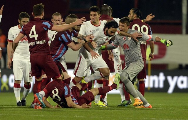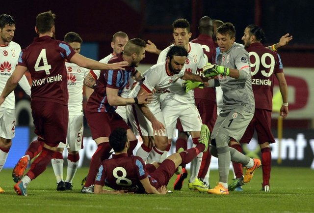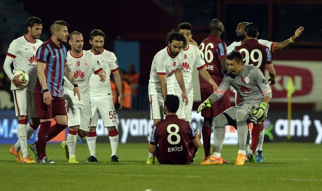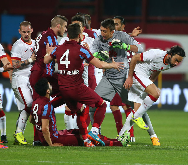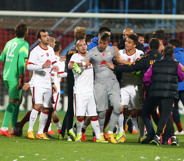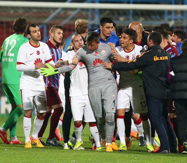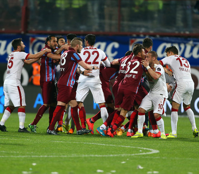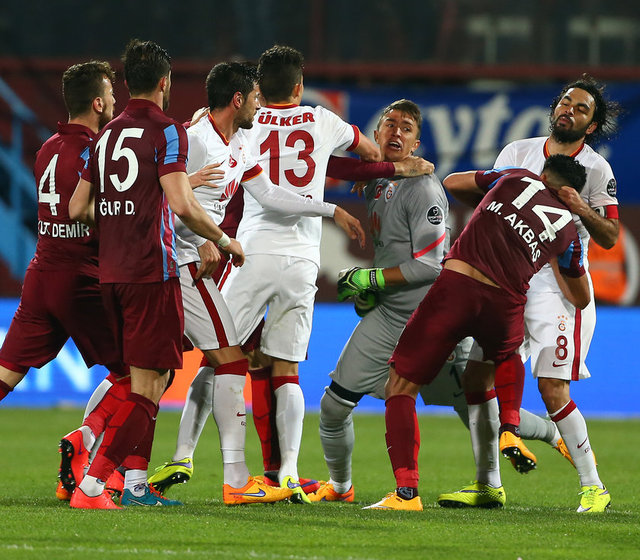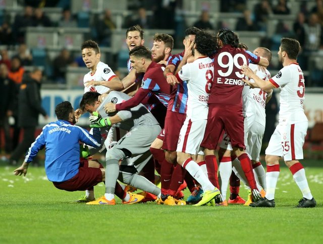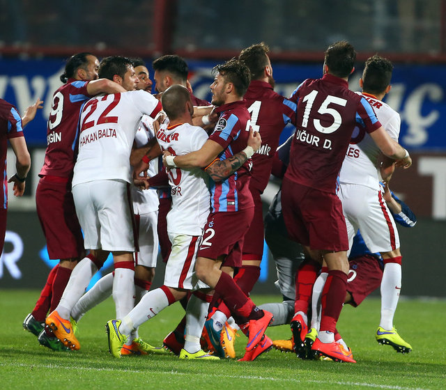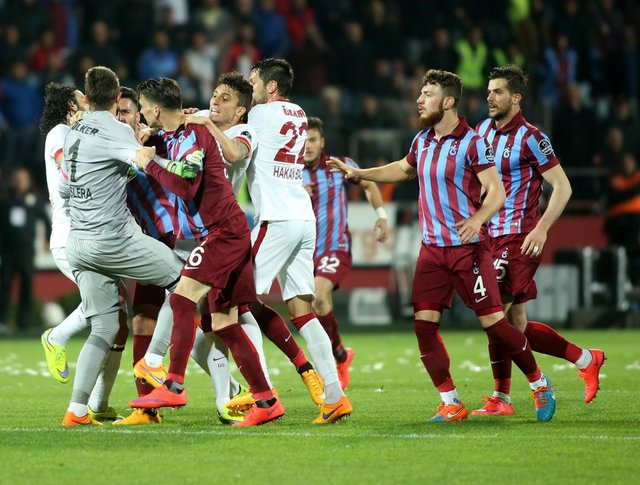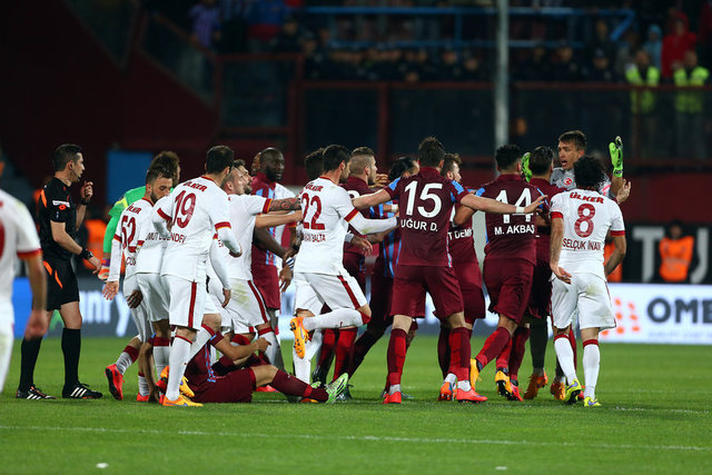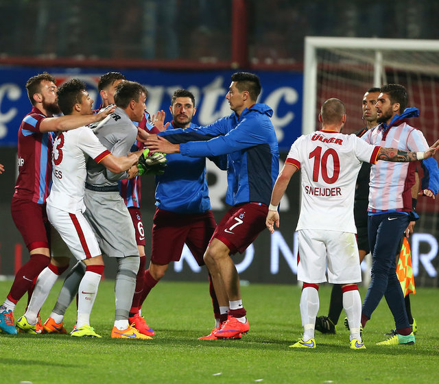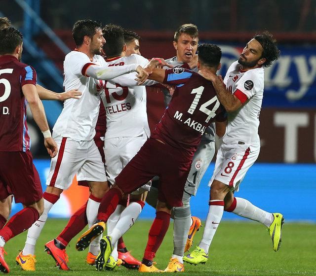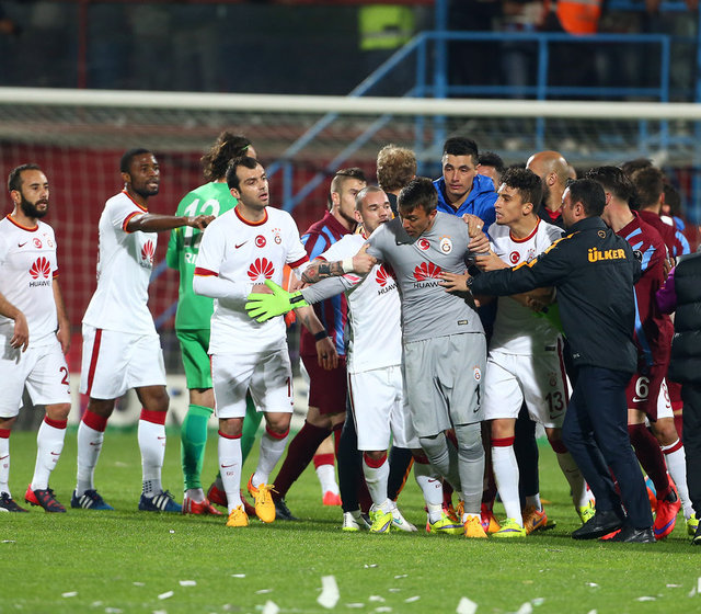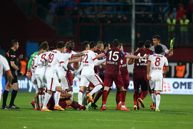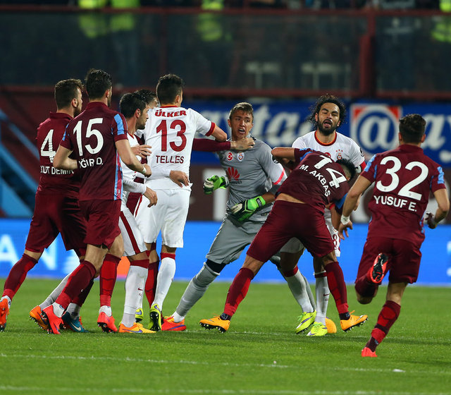 Spor Toto Süper Lig'de Trabzonspor ile Galatasaray, Hüseyin Avni Aker Stadı'nda karşılaştı. İki takım oyuncuları arasında bir pozisyonun ardından gerginlik yaşandı.
