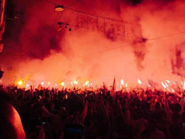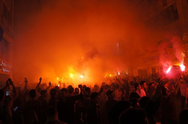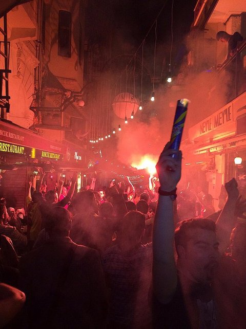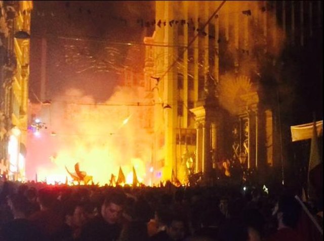 Sarı kırmızılı taraftarlar, takımlarının şampiyonluğunu ilan etmesini İstiklal Caddesi üzerinde bulunan Galatasaray Lisesi önünde meşaleler yakıp, tezahüratlar atarak kutladı.