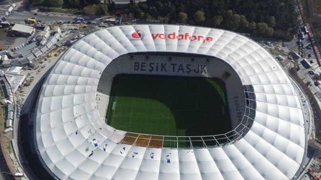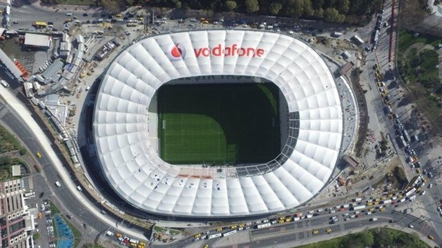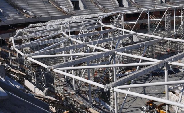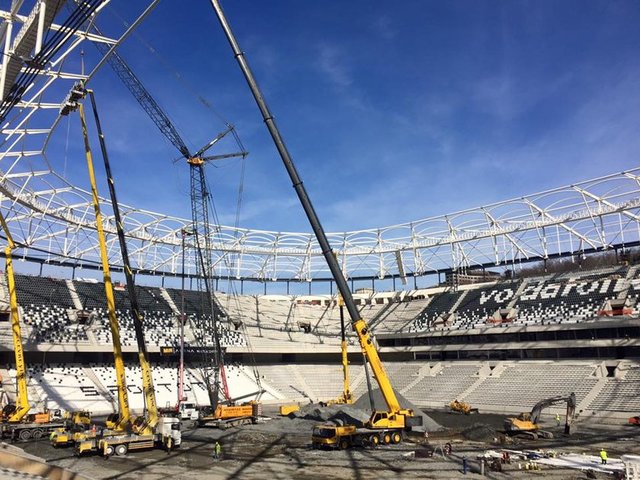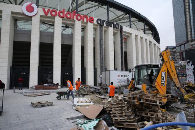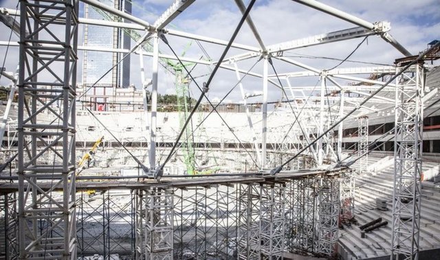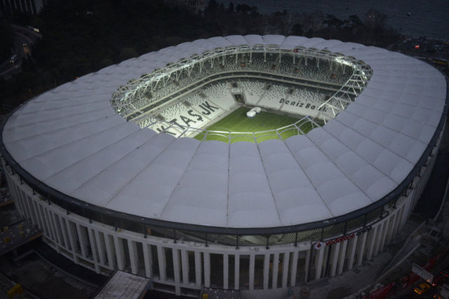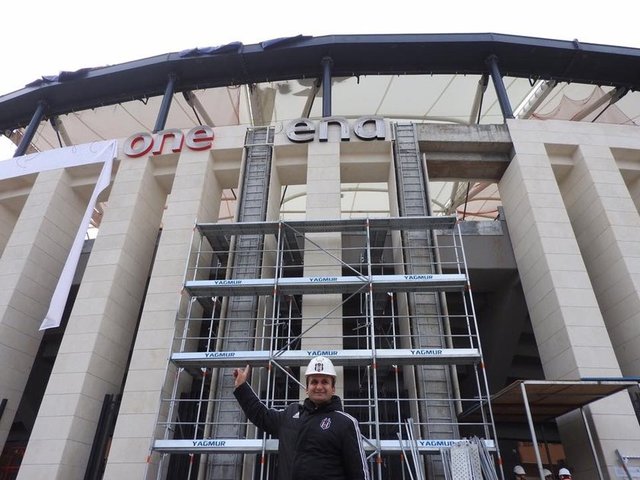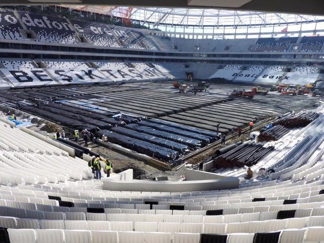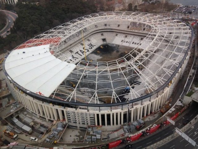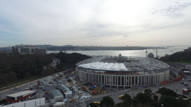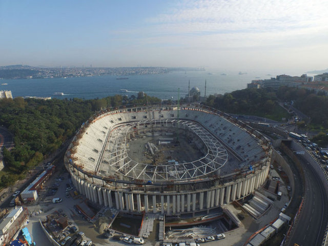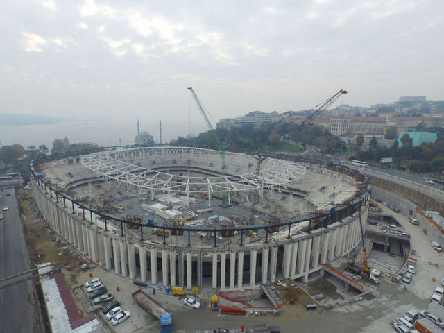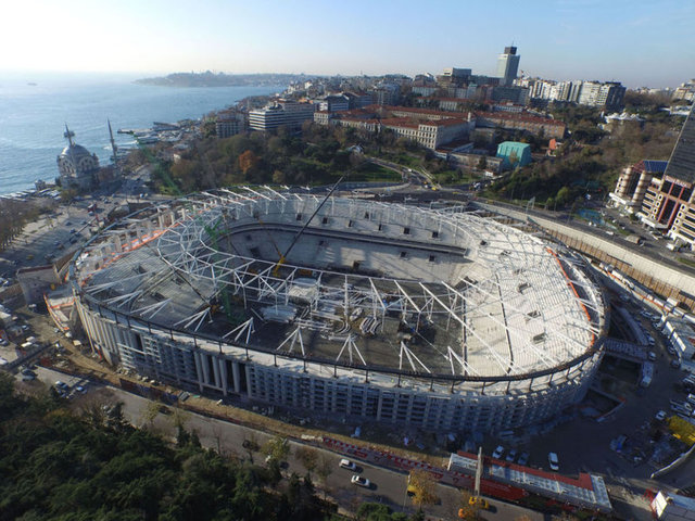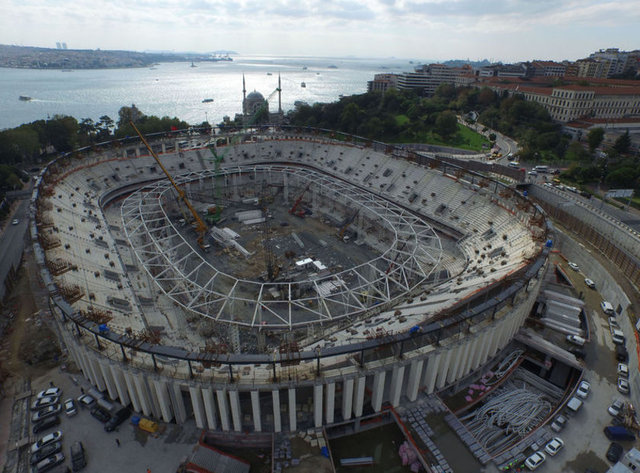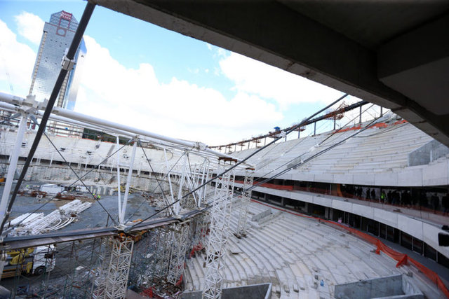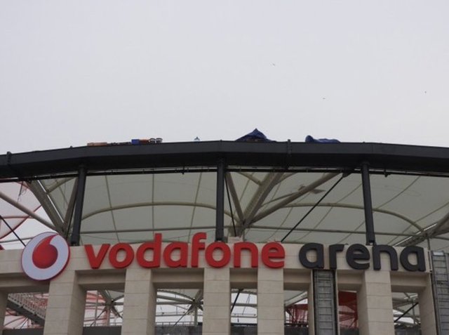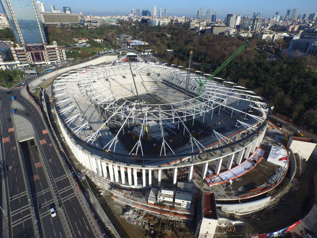 11.01.2016 - Beşiktaş'ın yeni stadyumu Vodafone Arena'da çelik çatı üzerinde yapılan kedi yolu ve çatı kaplamasını tutacak oval boruların montajı tamamlandı.