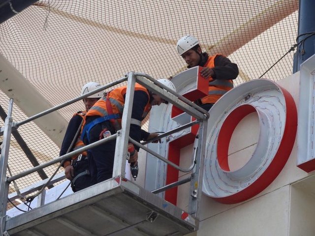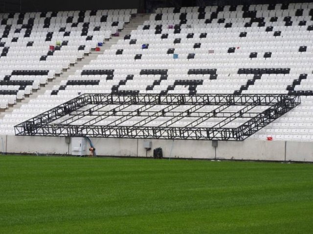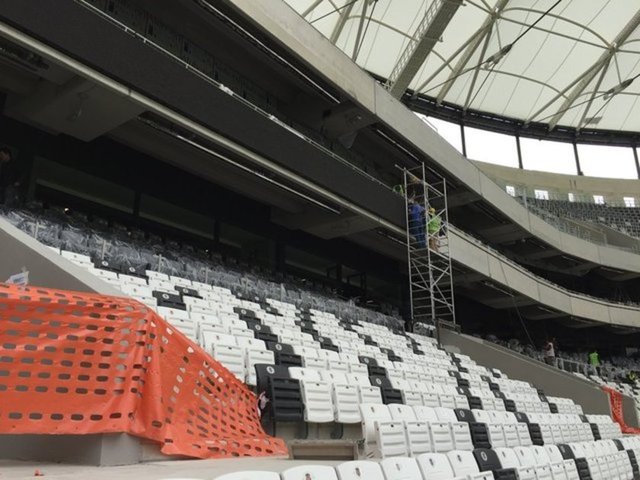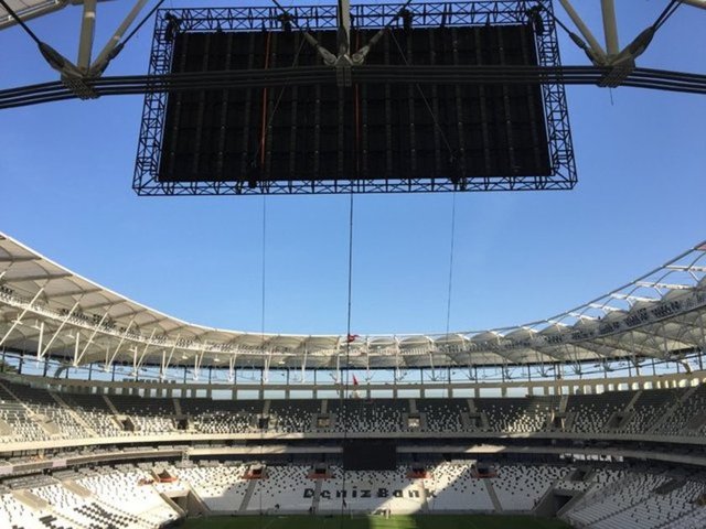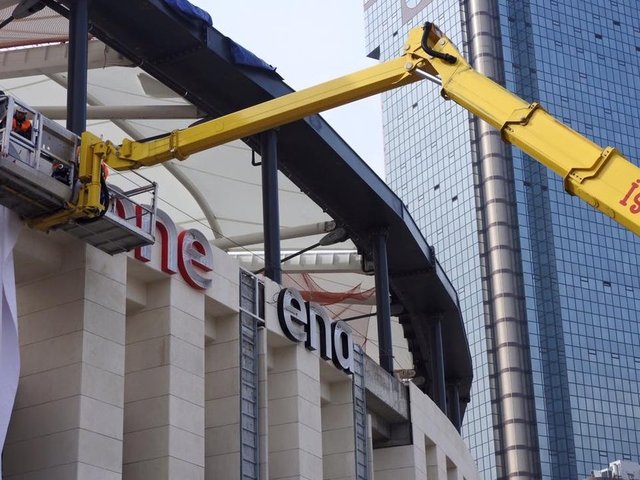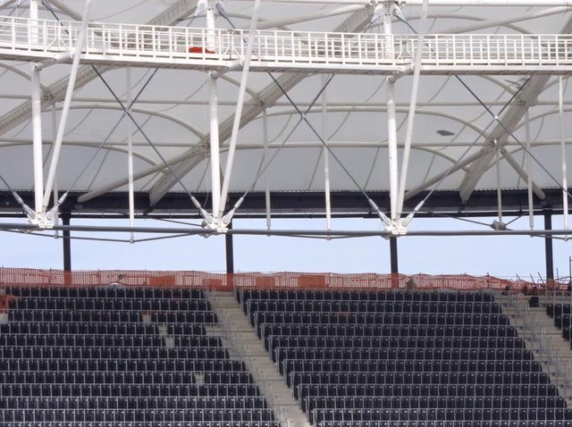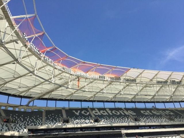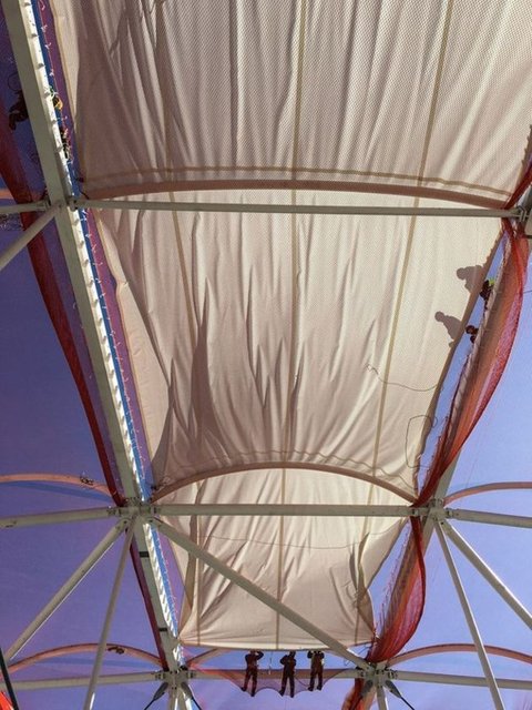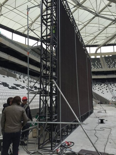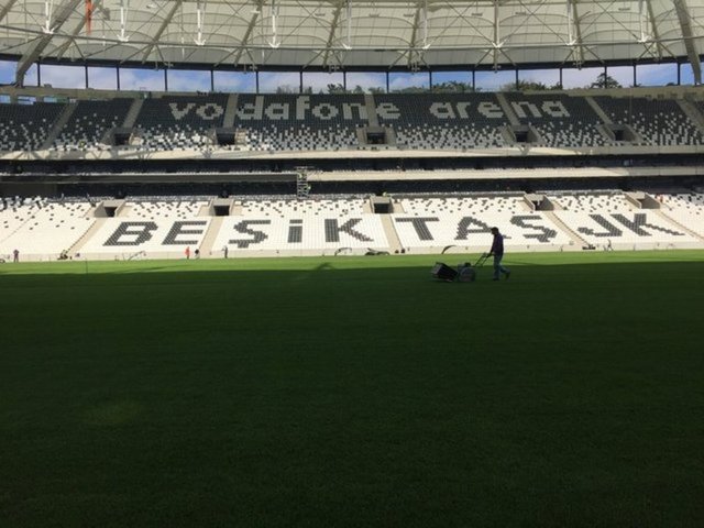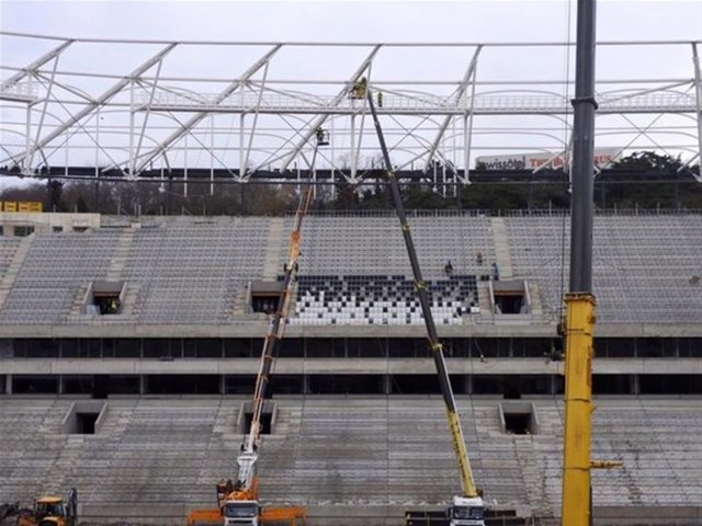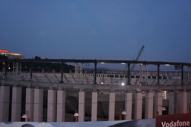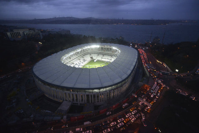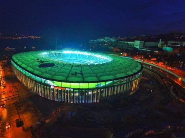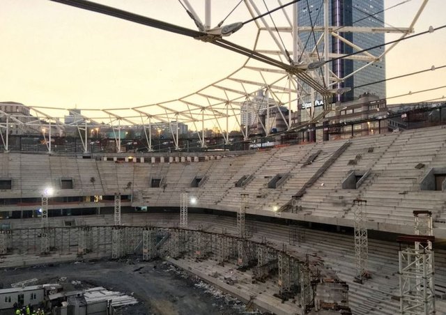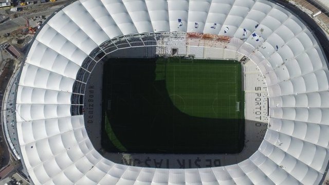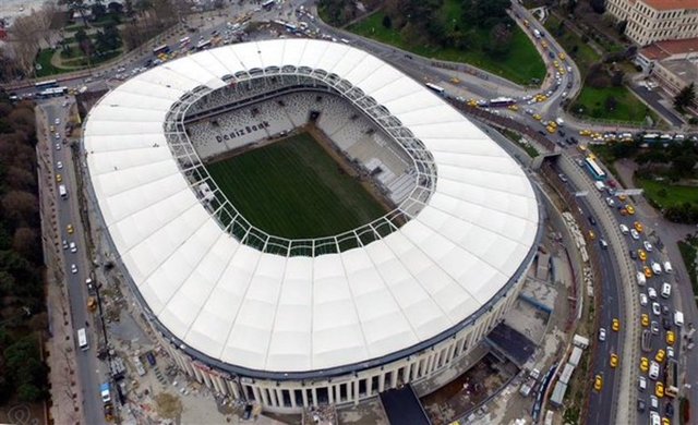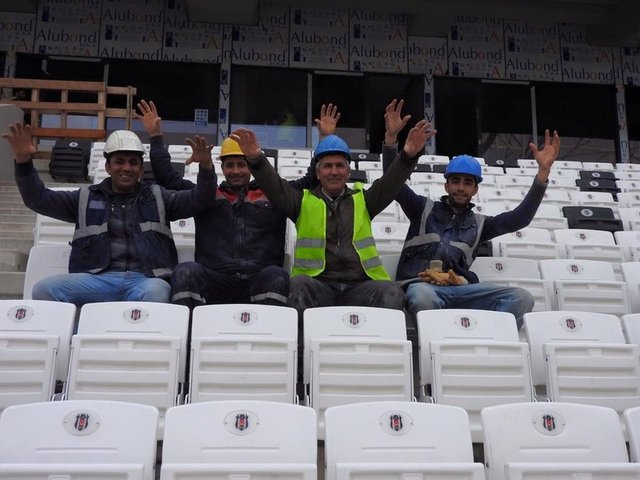 11.01.2016 - Beşiktaş'ın yeni stadyumu Vodafone Arena'da çelik çatı üzerinde yapılan kedi yolu ve çatı kaplamasını tutacak oval boruların montajı tamamlandı.