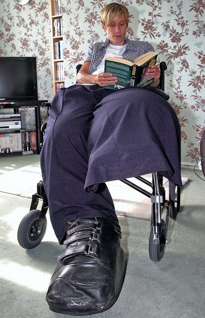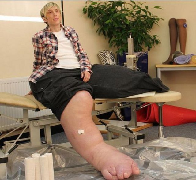 İngiltere'de henüz tıp literatürüne geçmemiş bir hastalık yüzünden 3 yıl önce sol bacağı ampüte edilen, sağ bacağı ise 107 kilo ağırlığına çıkan Mandy Sellars'ın bacağı sürekli büyüyor...