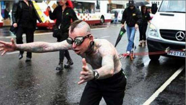 Vücudunun yüzde 98'i dövmelerle kaplıydı ama o yetinmedi,göz aklarına da mürekkep enjekte etti.Amerika'nın Oregon eyaletinde yaşayan Matt Gone, 'İnsan dama tahtası' olarak biliniyor. Göz aklarına mürekkep enjekte eden Gone'un şimdi bir gözü tamamen mavi, diğeriyse yeşil. Dövmeyi evde kendisinin yaptığını anlatan Gone, "Aslında tehlikeli bir iş yapmadım. Dövme konusunda çok bilgiliyim. Risk aldım ama değerdi" diyor.