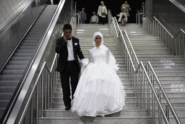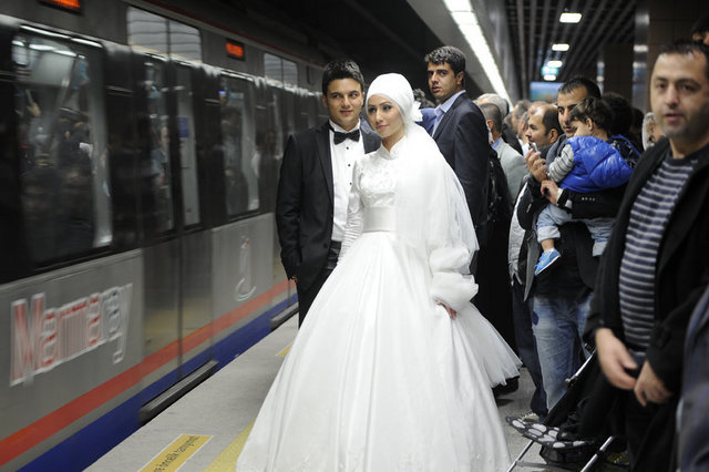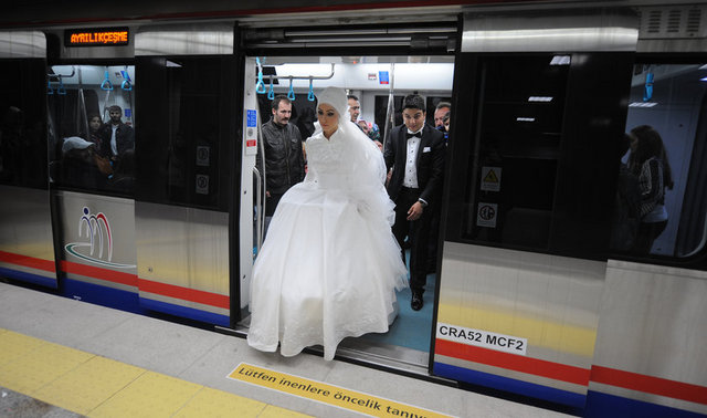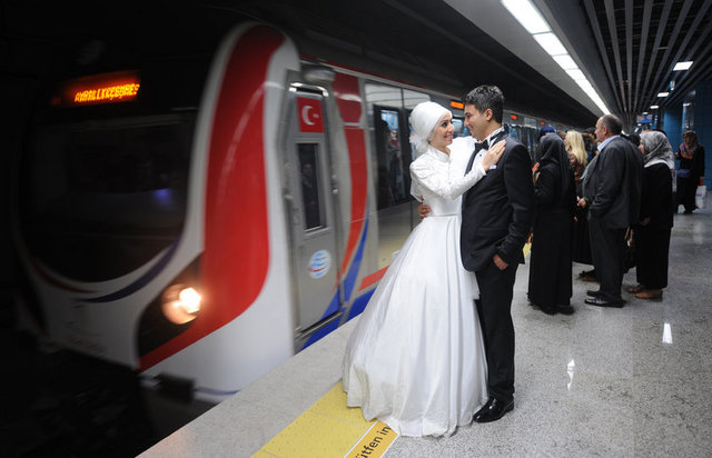 Düğün törenlerinin ardından fotoğraf çektirmek için yer düşünen Ekrem (25) ve Behiye (25) Çetin çifti, bir arkadaşlarının önerisi üzerine Marmaray'da fotoğraf çektirme kararı aldı.