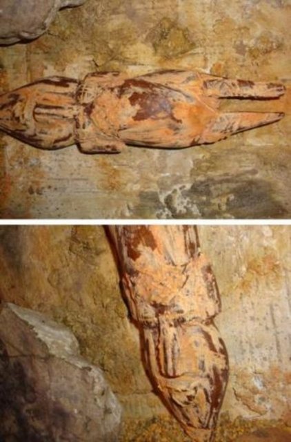 Pramidin içinde bulunan mezar odasında yerde boyu 2 metreye yakın bir mumya, mumyanın başında bulunan bir kayada çeşitli işaret ve yazıların yanı sıra "ay yıldız, kurt başları" dikkat çekiyor.