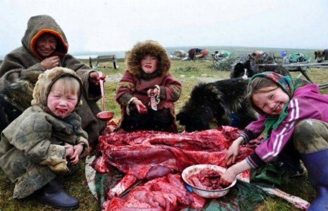 - Rusya'nın en kuzeyinde yaşayan bu insanlar, geyik bakıcıları olarak biliniyor.Onların en büyük özelliği eti çiğ çiğ yemeleri. Dondurucu soğukta yaşayan nenetsler, modern yaşamı reddediyor.