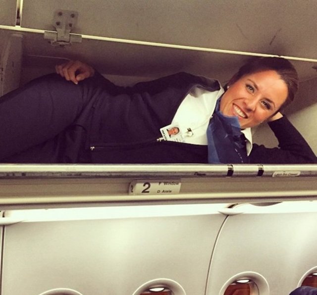 Yolcuların uçağı terk etmesiyle birlikte boş bagajların içerisine girerek poz veren hostesler, bu kareleri '#overheadbin' hashtag'i ile paylaşıyor. -
