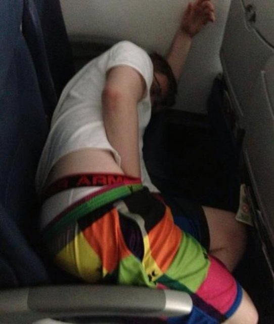 Bu rahat yolcuyu görüntüleyen memurlar 'bir sonraki uçuşa kadar yayılan adama selamlar' yazdı.