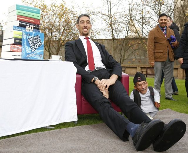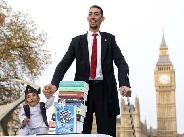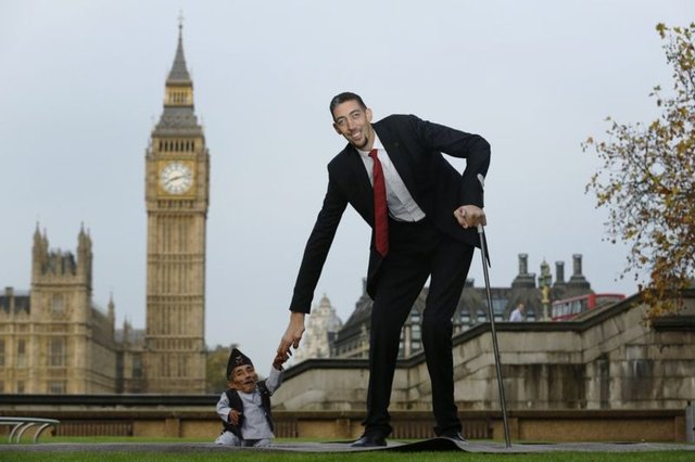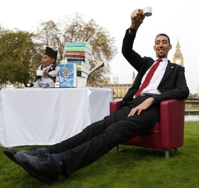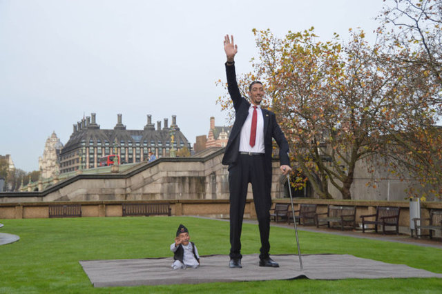 Dünyanın en uzun ve en kısa adamı bir araya geldi