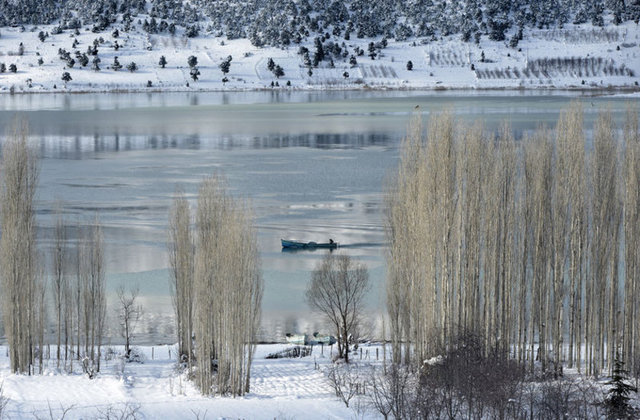 " Hatice Yılmaz (65), hava sıcaklığının eksi 15 derece olduğu gün hastaneye gidebilmiş. Çünkü göl buz tutmamış.