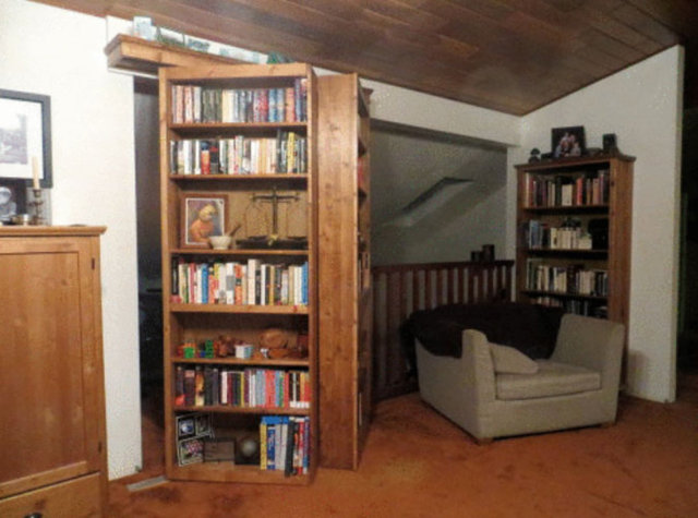 O sadece bir kitaplık değil! Kitaplığınızın arkasında özel eşyalarınızı saklayabilirsiniz.