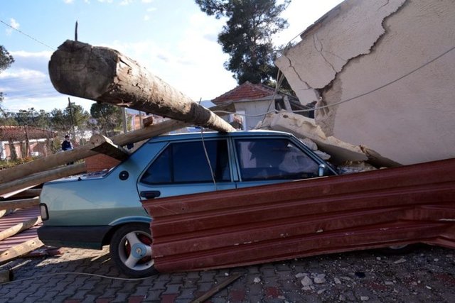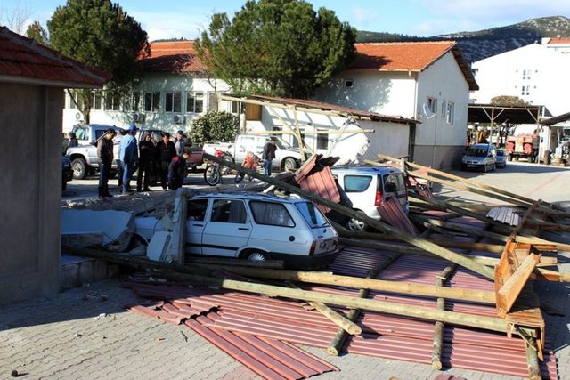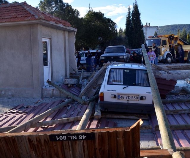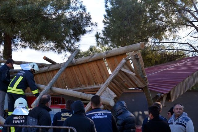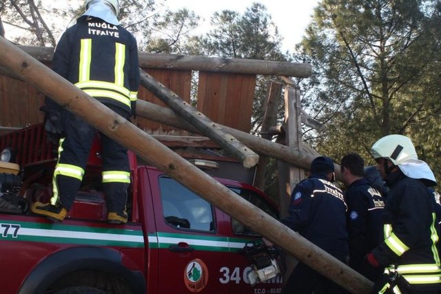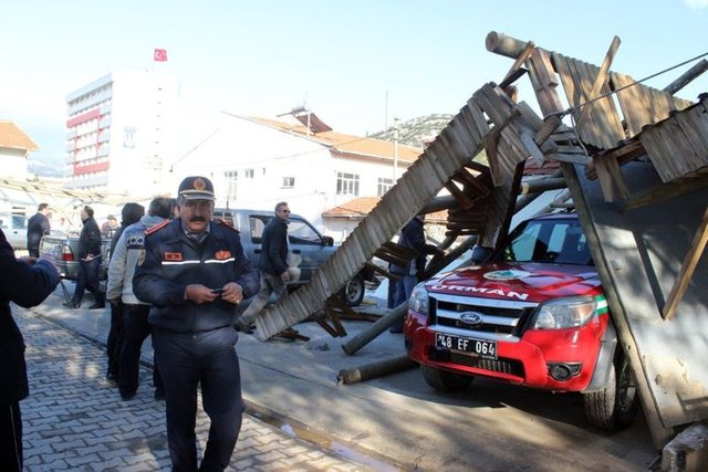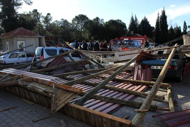 Muğla'da, aniden ortaya çıkan ve 30 saniye süren hortum, Orman Bölge Müdürlüğü'ne ait Şeflikteki tek katlı bir binayı yıkıp geçti. Mesai bitiminde olayın yaşanması nedeniyle az sayıda personelin bulunduğu şeflikte ölen ya da yaralanan olmadı.