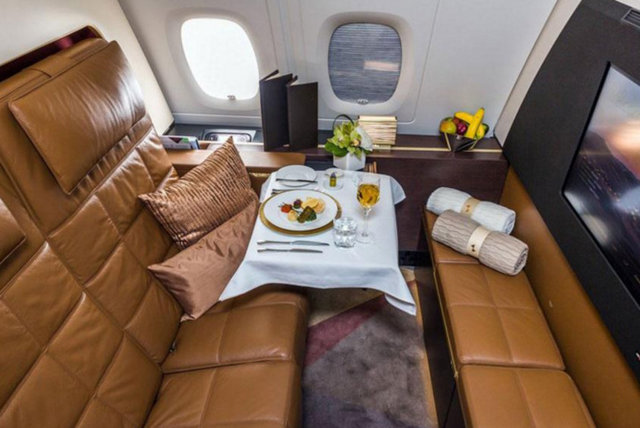 Birinci sınıf yolcular 5 metrekarelik bir alana sahip. Onların uçağa ödediği bedel 8400 ve 8900 dolar arası. -