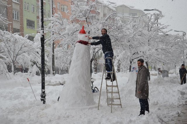 7'den 70'e herkesin eğlencesine dönüşebilen kar yağışı yurdum insanının yaratacılığına da fırsat veriyor. İşte ilginç kardan adamlar...