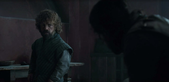 Bu konuşmadan sonra finali şekillendiren sahnelerden biri de Tyrion Lannister ile Jon Snow'un konuşmasıydı. Targaryen'ın, binlerce masum insanın öldürdüğünü söyleyen Tyrion Lannister, "Kraliçemiz esirleri uzun süre bekletmiyor. En yakın arkadaşıma ihanet ettim ve yanmasını bekledim. Askerleriye konuşmasını dinledin. Savaşmayı bitirmiş biri gibi mi konuşuyordu? Dünyadaki herkesi özgürleştirecek ve sonra onlara hükmedecek. Daha da güçleniyor. Nereye gitse kötü adamlar ölüyor ve biz de alkış tutuyoruz. İyi ve haklı olduğundan daha çok emin oluyor. Kaderinin herkes için daha iyi bir dünya kurmak olduğuna inanıyor. Buna insansaydın, seninle cennet arasında duran herkesi öldürmez miydin? Ona tüm kalbimle inanmıştım" dedi.