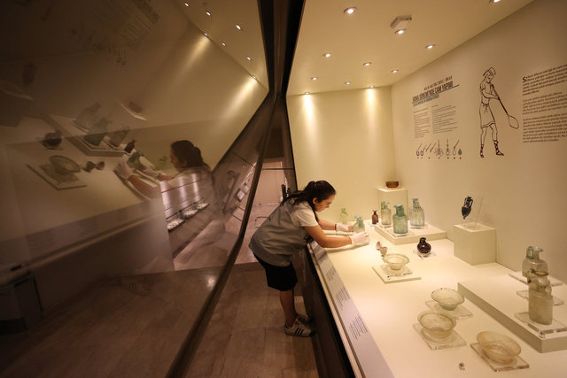 Gaziantep Arkeoloji Müzesi'ndeki cam eserler özel jelle sabitleniyor