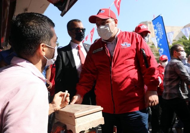 Renkli görüntülere sahne olan kortej yürüyüşü sırasında balkonlarından ve iş yerlerinden Türk bayrağı sallayan vatandaşlara Bakan Varank ve protokol üyeleri el sallayarak karşılık verdi.
