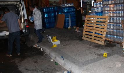 Çok sayıda merminin isabet ettiği markette ve önündeki bir minibüste inceleme yapan polis ekipleri, kaçan saldırganları yakalamak için bölgede çalışma başlattı.