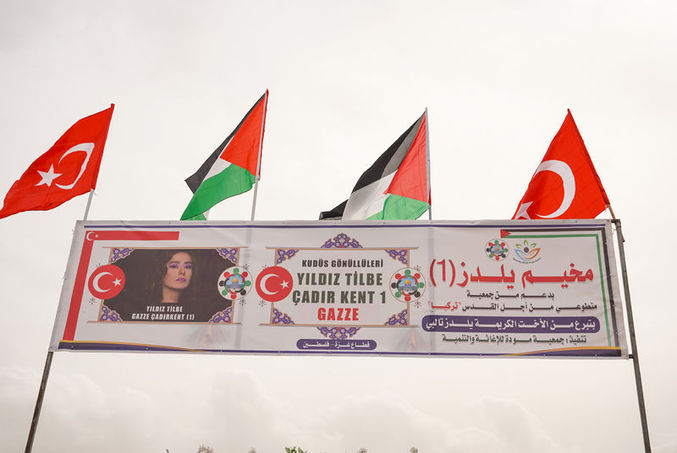 İsrail saldırıları nedeniyle yerinden edilen Filistinlileri sığındığı "Yıldız Tilbe Çadır Kenti" bugün düzenlenen törenle açıldı.