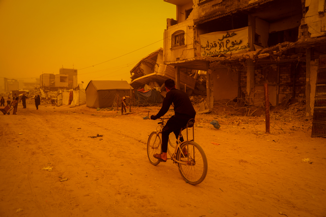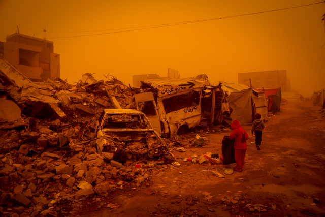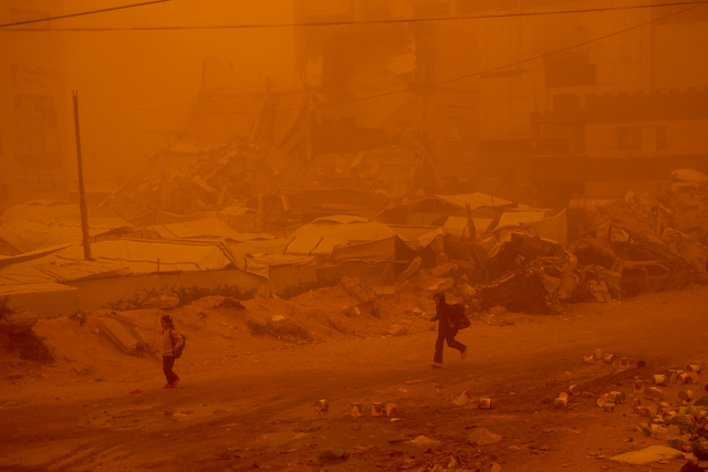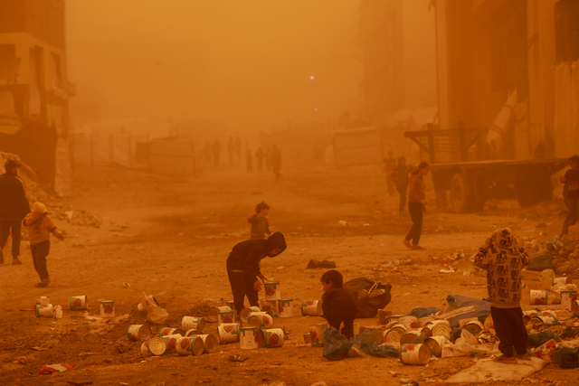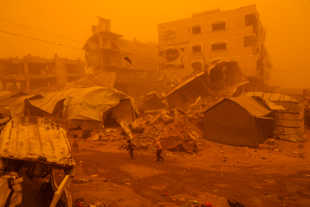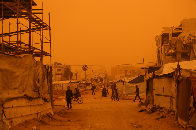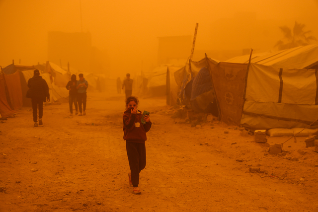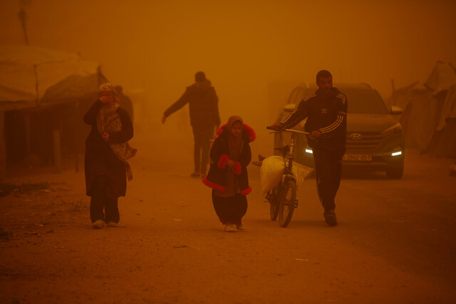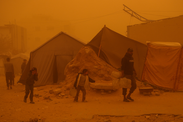 Gazze Şeridinde etkili olan kum fırtınası yaşamı olumsuz etkiledi. Deyr Belah'taki çadırlarda yaşayan Filistinliler, kum fırtınasının ardından zor anlar yaşadı